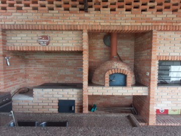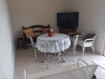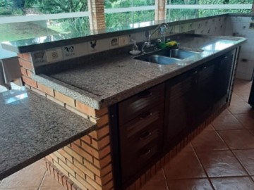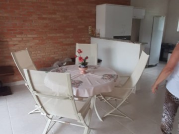 Casa de caseiro com 02 dormitórios, sala, cozinha e banheiro. Quiosque todo fechado com vidro para festas com salão de jogos, churrasqueira, forno a lenha, fogão a lenha, banheiro, sala de banho com 03 chuveiros.