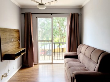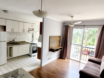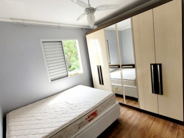 Possui armários planejados na cozinha e lavanderia, painel na sala e armarinho no banheiro.