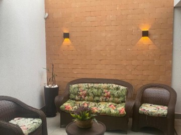 3 dormitórios, sendo 1 suíte, possui 3 banheiros, 5 vagas de garagem, 2 salas.