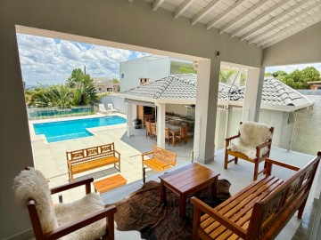 Piscina aquecida com cascata, prainha para crianças, uma área de lazer muito aconchegante. Area externa equipada com moveis de madeira.