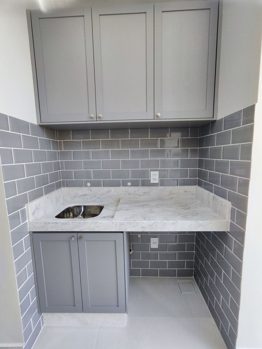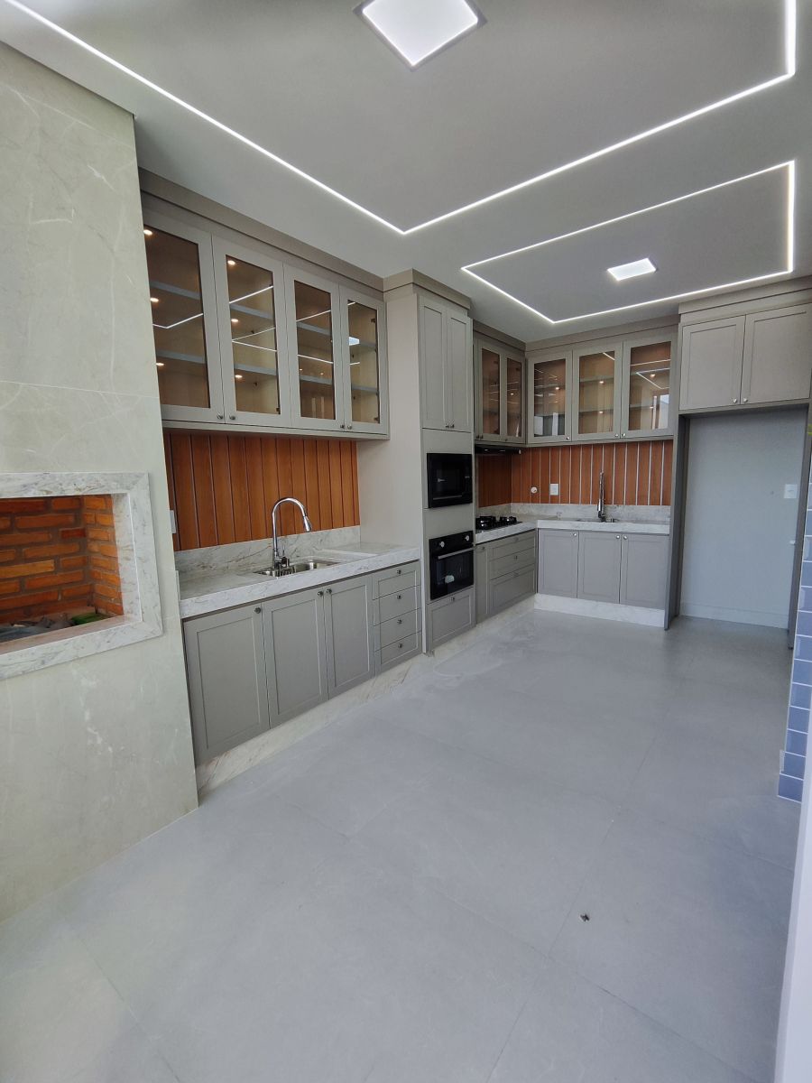 - Área gourmet com armários e churrasqueira