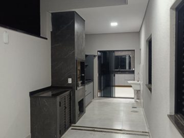 A ampla sala convida ao relaxamento e à convivência, enquanto a cozinha, totalmente equipada, é um convite para os amantes da culinária. Para os momentos de lazer, a casa oferece um espaço gourmet com churrasqueira, perfeito para reunir amigos e familiares em um ambiente agradável e convidativo.