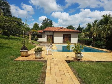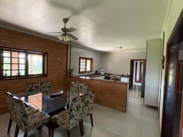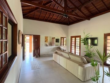 A chácara dispõe de 4 dormitórios, todos eles suítes espaçosas e bem iluminadas, proporcionando privacidade e conforto para todos os moradores. Com 6 banheiros, a praticidade é garantida para o dia a dia. A sala, ampla e convidativa, é perfeita para relaxar e desfrutar de momentos especiais.