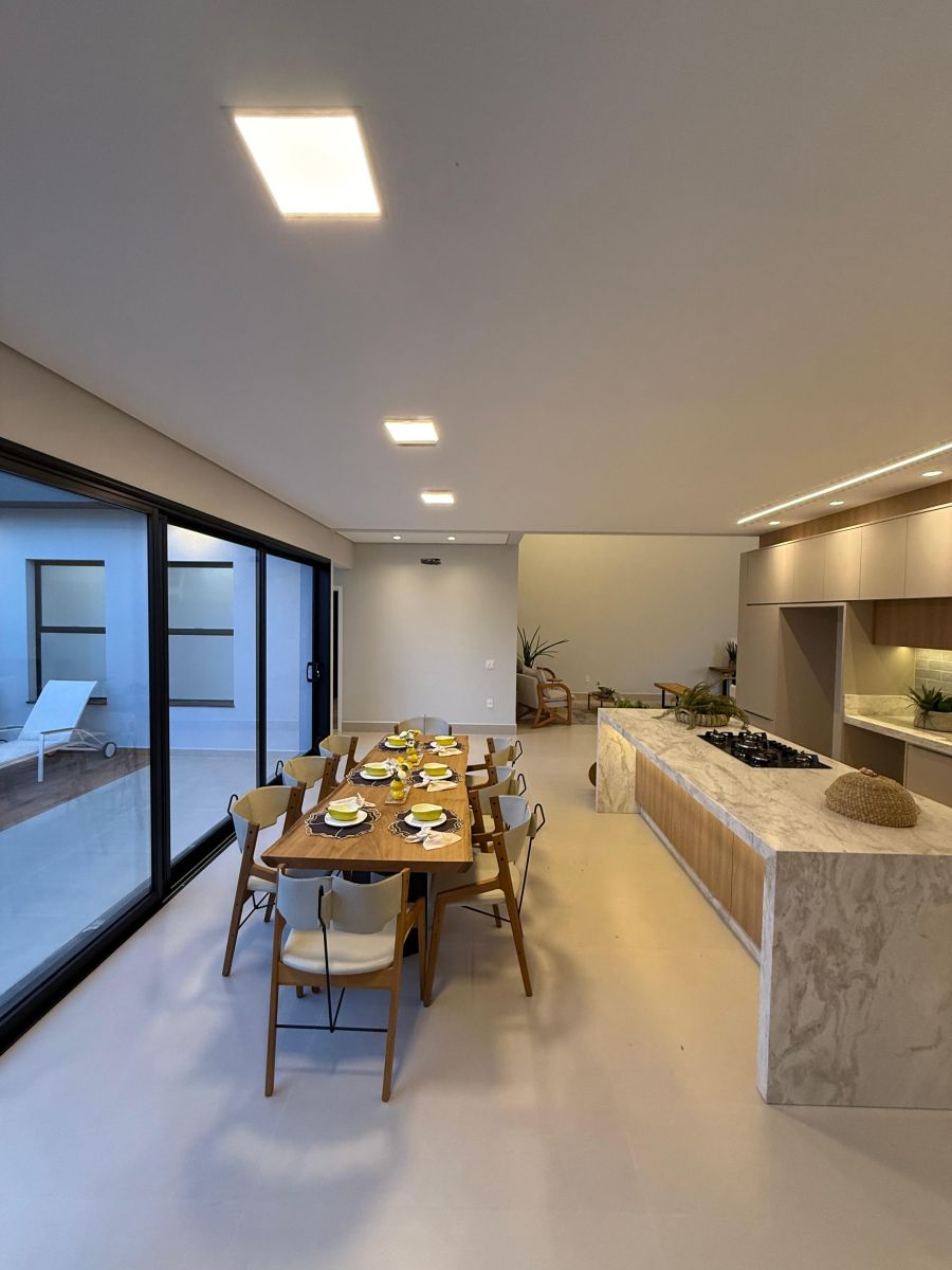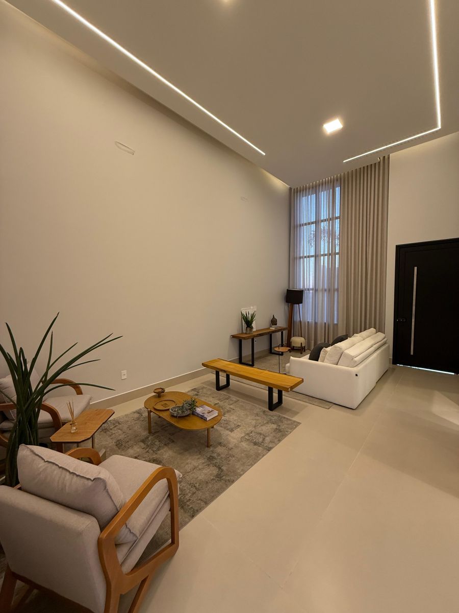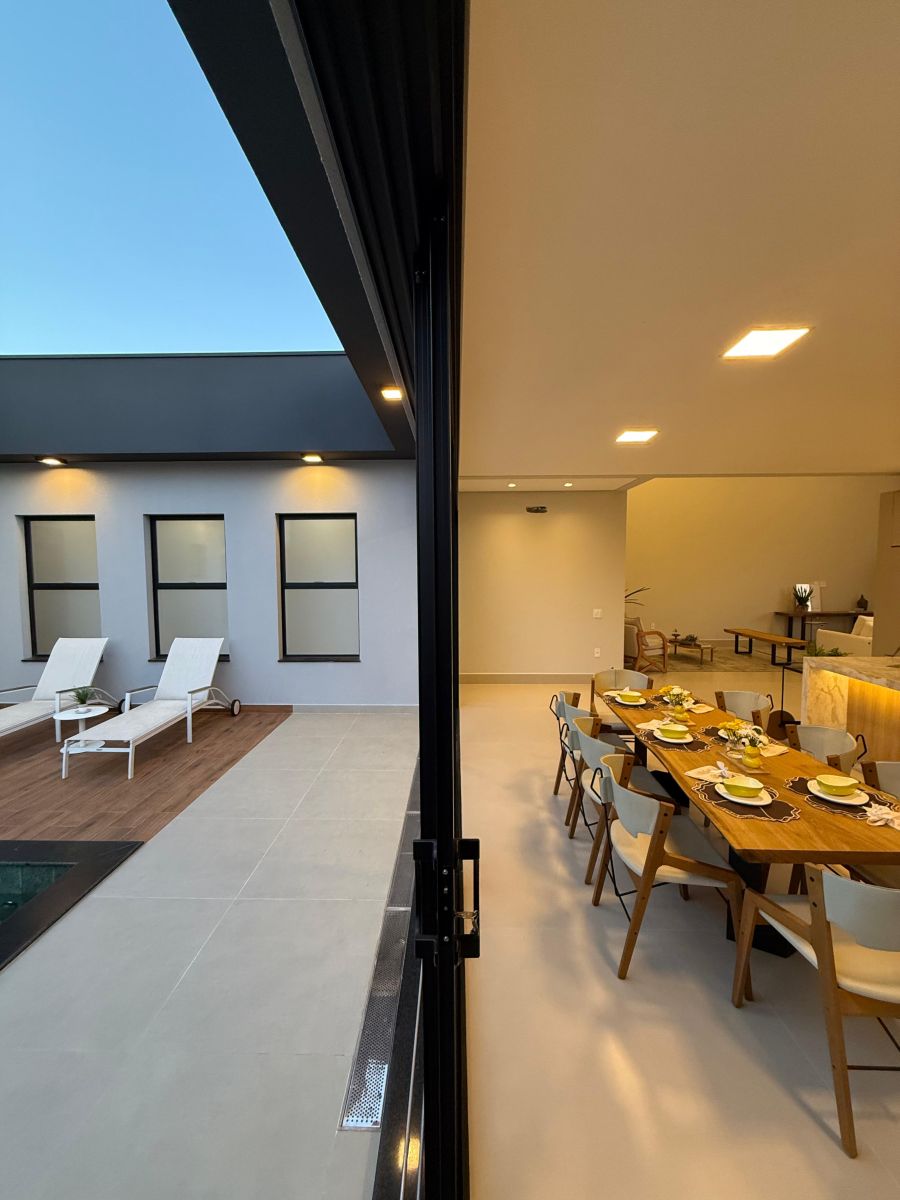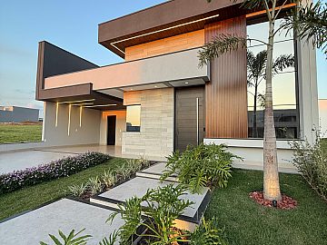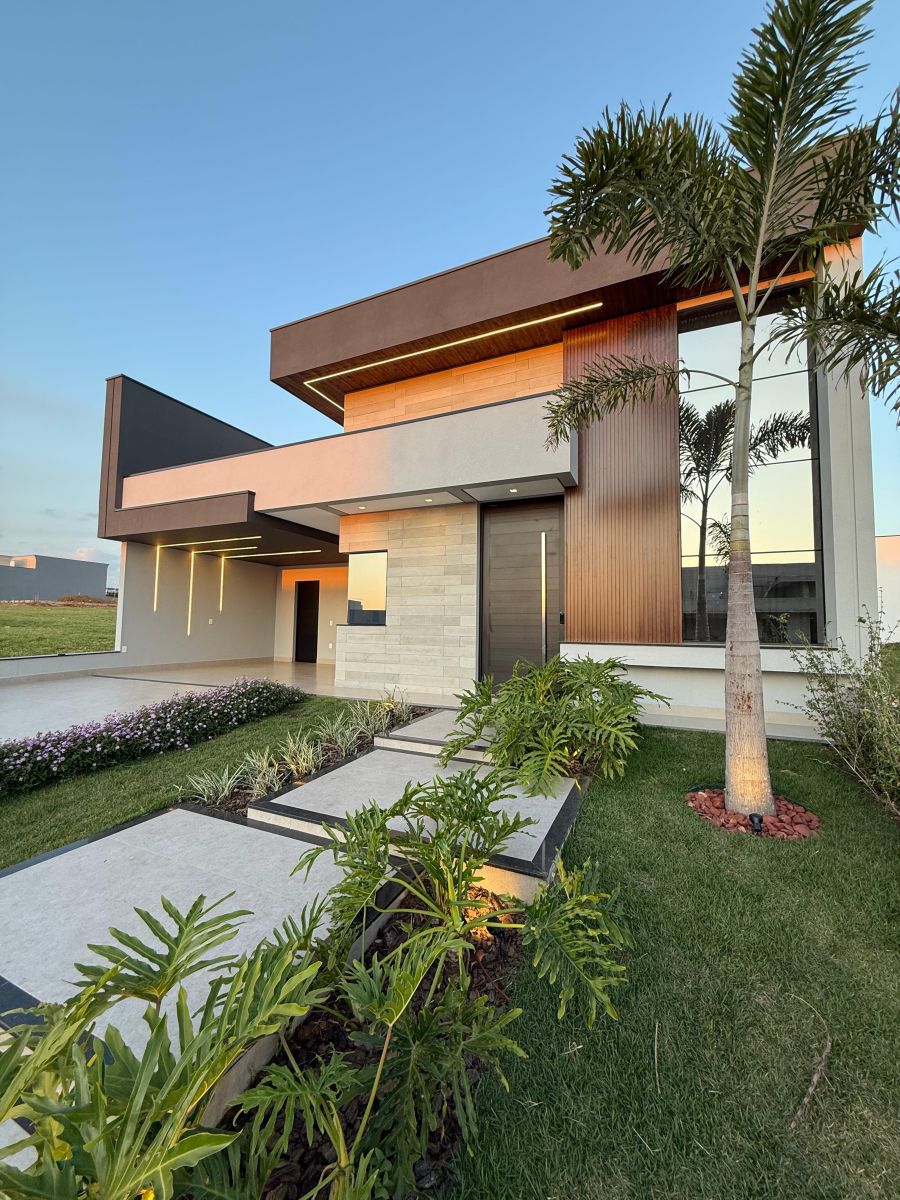 Apresentamos esta belíssima casa térrea, com arquitetura moderna e ambientes integrados, localizada em um dos condomínios mais desejados da cidade.