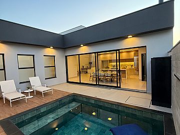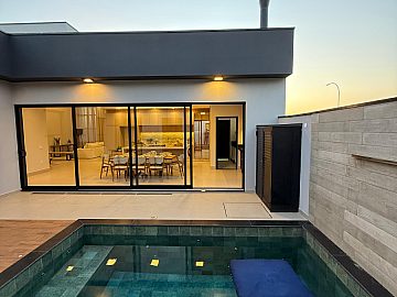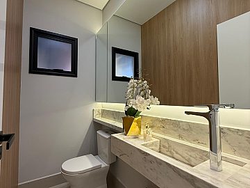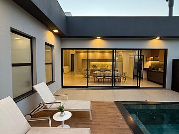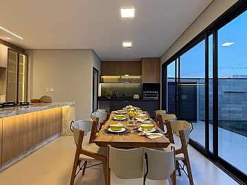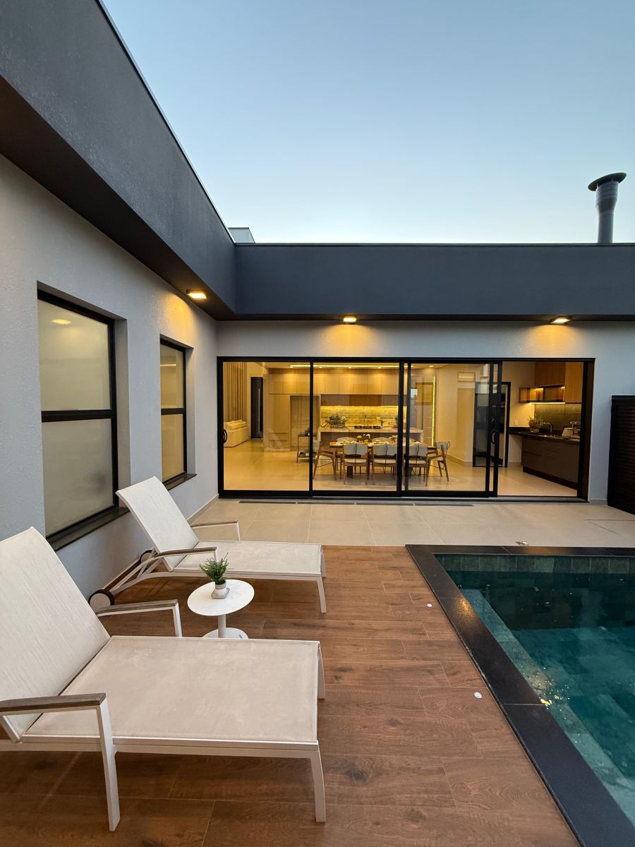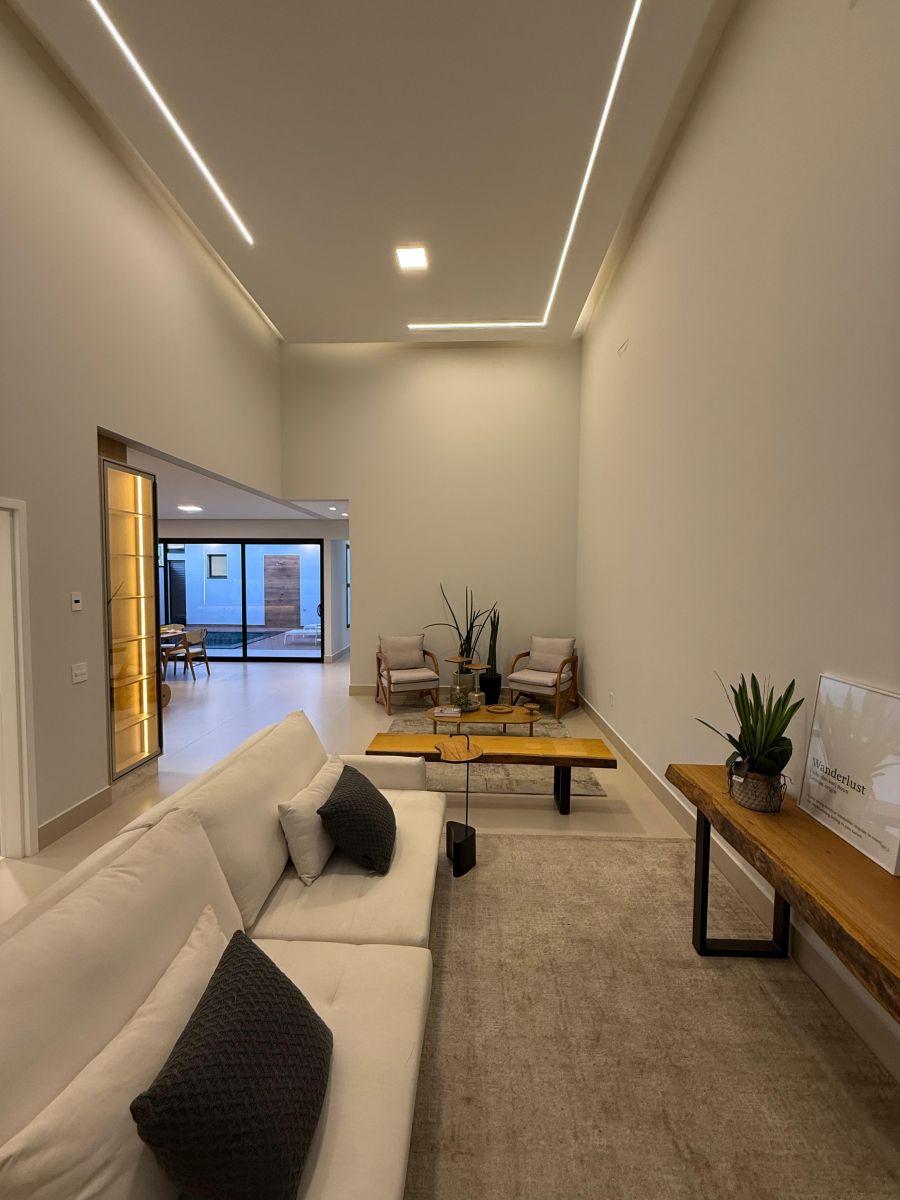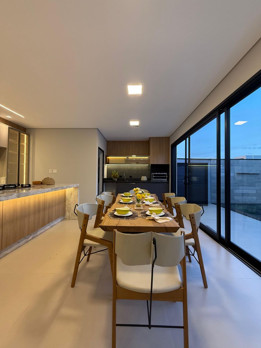 Apresentamos esta belíssima casa térrea, com arquitetura moderna e ambientes integrados, localizada em um dos condomínios mais desejados da cidade.