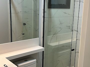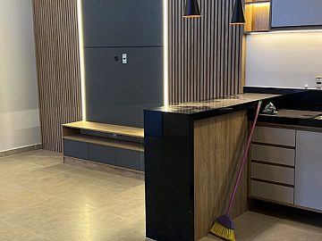 Marcenaria completa na cozinha, sala, área gourmet e banheiros