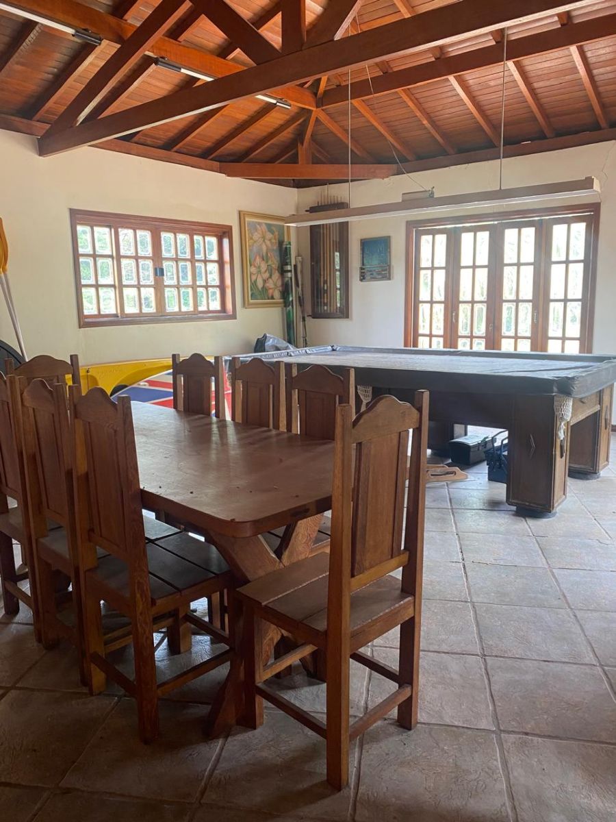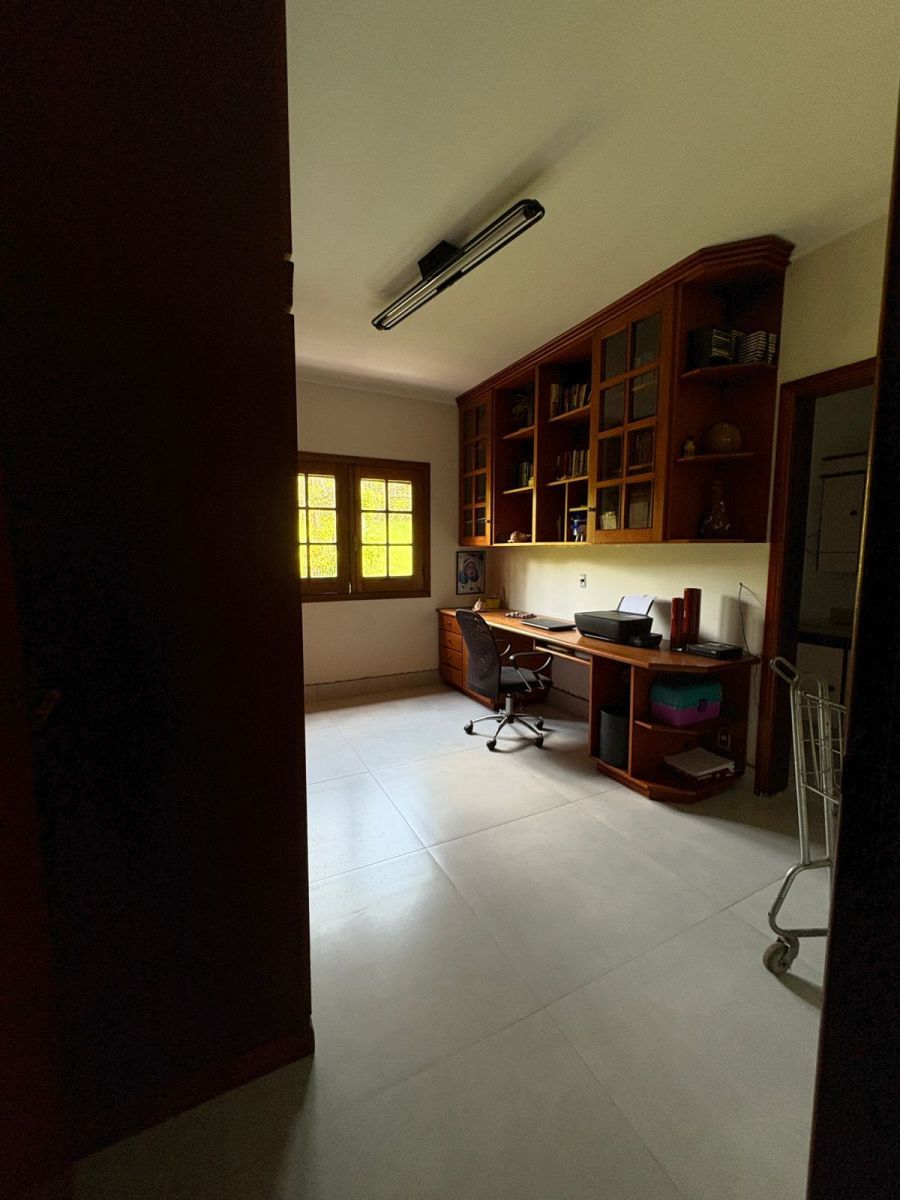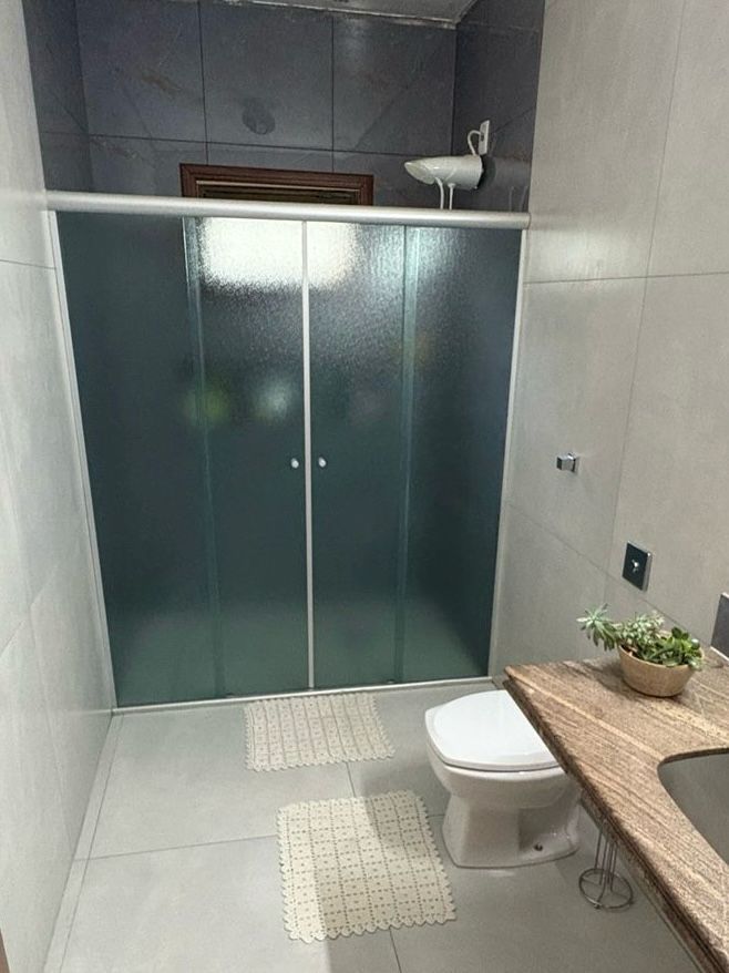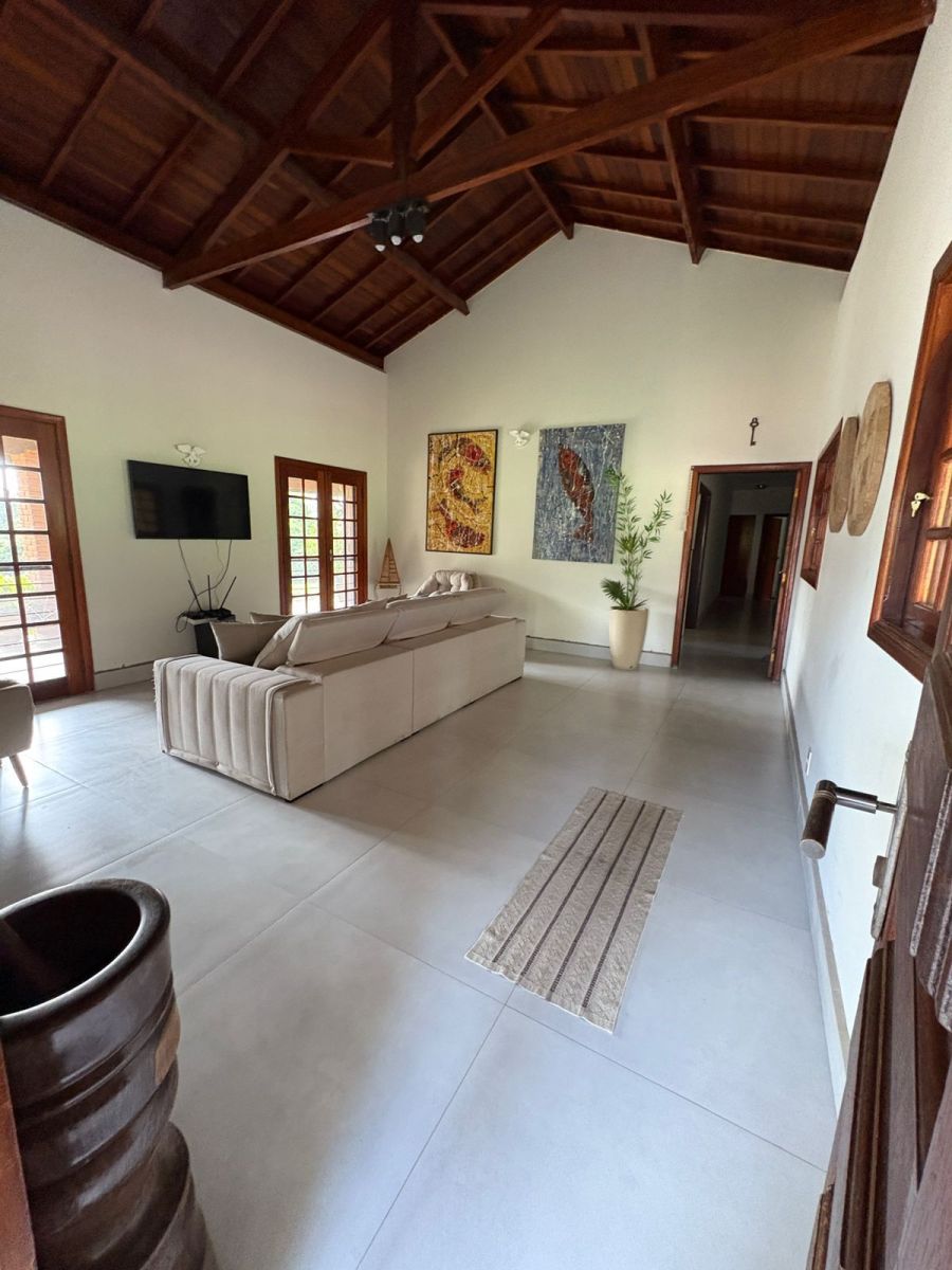 A estrutura residencial é composta por cinco dormitórios, dos quais quatro são suítes, proporcionando máxima privacidade e conforto. O projeto interno conta com três salas amplas, permitindo a criação de ambientes distintos para convivência e recepção, totalizando sete banheiros que atendem de forma eficiente tanto a área íntima quanto a social.