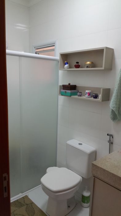 3 dormitórios sendo 1 suíte, banheiro com box blindex e gabinete.