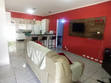 Construção com 300 metros , toda gramada, árvores , churrasqueira, piscina , banheiros separados da casa para uso externo.