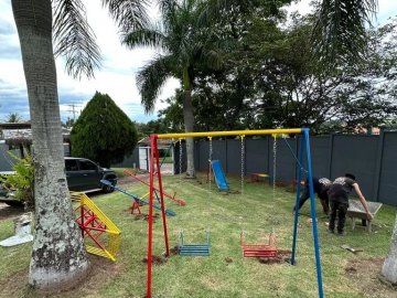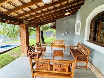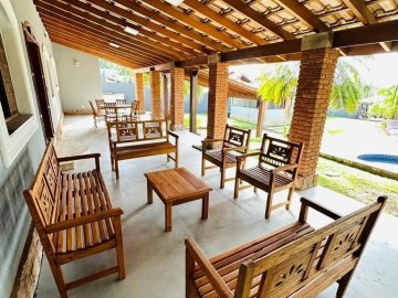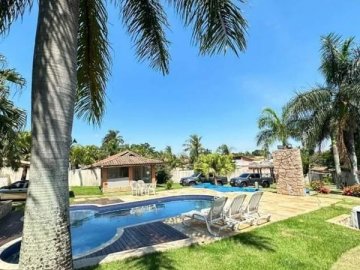 LINDA CHACARA COM PAISAGISMO FORMADO, TODA MURADA COM PORTAO ELETRONICO, 2 DORMITORIOS GRANDE SENDO 1 SUITE COM CLOSET, DORMITORIOS COM PLANEJADOS E AR-CONDICIONADO, SALA DE TV E JANTAR COM PE DIREITO ALTO, COM AR-CONDICIONADO, LAVANDERIA GRANDE COM PLANEJADOS E 1 BANHEIRO GRANDE, COZINHA GRANDE TODA PLANEJADA COM PE DIREITO ALTO, FOGAO E FORNO EMBUTIDO, CASA TODA AVARANDADA, AREA GOURMET SEPARADO DA CASA, TODA FECHADA COM CHURRASQUEIRA, FOGAO, AR-CONDICIONADO. PISCINA GRANDE COM PRAINHA, HIDROMASSAGEM, AQUECEDOR, QUIOSQUE DE SAPE, CASA COM ARVORES FRUTIFERAS FORMADA, GARAGAEM PARA 8 CARROS.