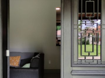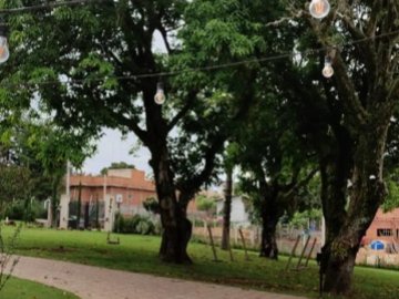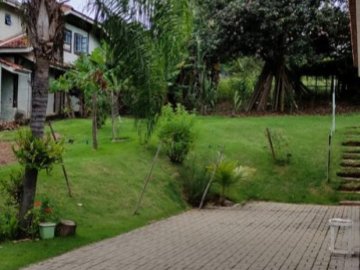 Chácara toda gramada com paisagismo e árvores frutíferas.