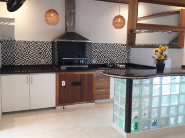 Área gourmet com churrasqueira e bar temático, lavabo, linda área de piscina de 15m² com iluminação LED, hidromassagem, cascata e aquecimento solar. Corredores em ambas laterais da casa. Garagem para 4 carros sendo 2 cobertos.